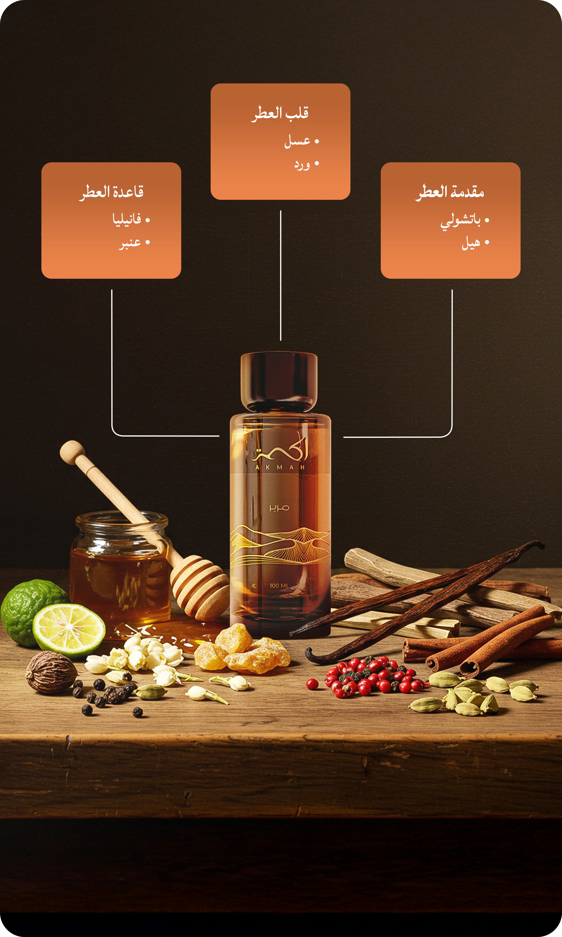 يُعد العسل هو البصمة الخاصة في مرير، حيث يُضفي على النوتات الزهرية لمسة حلوة تلامس المشاعر وتُضفي على العطر دفئًا ناعمًا يفيض بالفخامة.